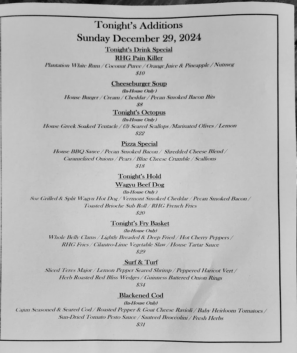 Grilled boneless breast, caramelized onions, smoked cheddar cheese, coleslaw, BBQ sauce, RHG fries